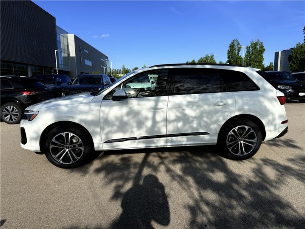 Unleash luxury and performance with the new 2025 Audi Q7 55 TFSI quattro Vorsprung Edition in striking Carrara White. Elevate every journey with unparalleled features and advanced technologies designed to impress:Luxurious Comfort: Sink into the black leather seating surfaces and enjoy the premium ambiance of the Gray Oak inlays. With multi-zone climate control, heated front seats, and a heated steering wheel, you'll always ride in comfort and style.Innovative Safety: Drive with confidence knowing that the Q7 is equipped with a suite of safety features, including Blind Spot Monitor, Lane Departure Warning, Front Collision Mitigation, Rear Collision Mitigation, and more. The Audi Q7 prioritizes your safety and peace of mind on every drive.Advanced Technology: The Audi Q7 comes loaded with advanced tech, including a Navigation System, Audi Virtual Cockpit, Bluetooth Connection, and a Bang & Olufsen 3D Premium Sound System. Stay connected and entertained with ease, thanks to the cutting-edge technology at your fingertips.Exceptional Performance: Powered by a V6 Cylinder Engine with Turbocharged capabilities, the Q7 delivers impressive performance and efficiency. The all-wheel-drive capability ensures you have traction and control in various driving conditions, while the gas/electric hybrid system adds an eco-friendly touch to your drives.Convenience at Your Fingertips: Experience convenience like never before with features such as a Power Liftgate, Remote Engine Start, Universal Garage Door Opener, and a Hands-Free Liftgate. The Q7 is designed to make your life easier and more enjoyable with every drive.Elegant Design: From the panoramic sunroof to the LED headlights and sleek aluminum wheels, every detail of the Audi Q7 exudes luxury and sophistication. The attention to detail in both the interior and exterior design sets the Q7 apart from the rest.Are you ready to elevate your driving experience with the 2025 Audi Q7 55 TFSI quattro Vorsprung Edition? Contact us today to schedule a test drive and experience the epitome of luxury, performance, and technology in one exceptional SUV. Drive the Audi Q7 and redefine excellence on the road.