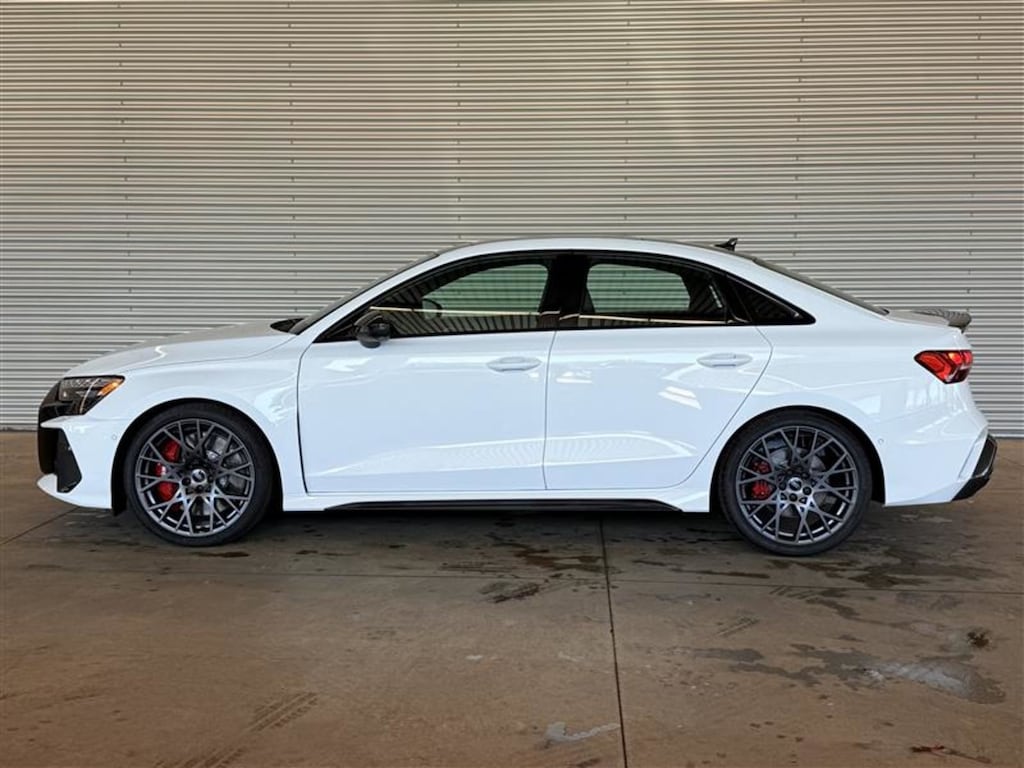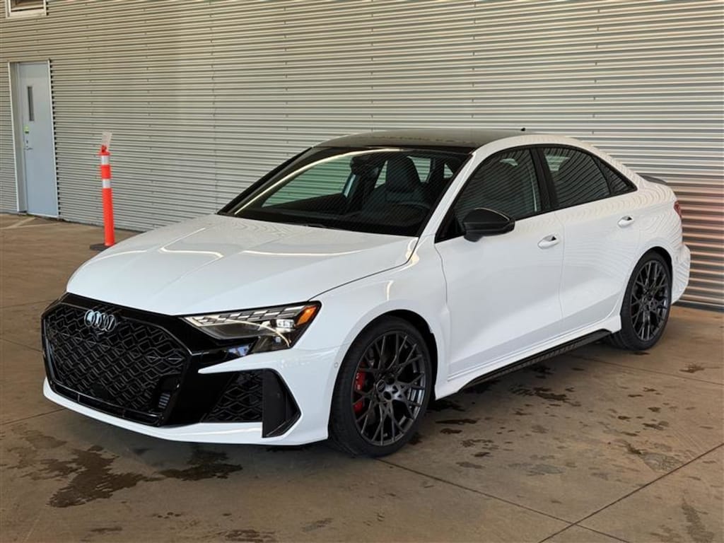 Experience the pinnacle of performance and luxury with the new 2025 Audi RS 3 2.5 TFSI quattro!Step into pure automotive excellence with the ARKONA WHITE exterior finish, complemented by a sleek BLACK W/BLACK STITCHING, FINE NAPPA LEATHER SEAT TRIM interior. The Carbon Optic Plus Package and red brake calipers enhance the sporty aesthetic, while the black roof adds a touch of sophistication.Equipped with the Advanced Driver Assistance Package, this Audi RS 3 offers cutting-edge safety features such as Automatic Parking, Blind Spot Monitor, Lane Departure Warning, and Adaptive Cruise Control for a confident and secure driving experience.Feel the power of the 5-cylinder turbocharged engine mated to the legendary quattro all-wheel-drive system, delivering exhilarating performance on any road. The 7-speed automatic transmission with dual shift mode ensures seamless acceleration.Luxury and technology harmonize inside the cabin with amenities like the Head-Up Display, Navigation System, and premium sound system, while comfort features such as heated front seats, power driver and passenger seats, and dual-zone climate control elevate your driving experience.Don't miss out on the opportunity to own the 2025 Audi RS 3, where precision engineering meets unparalleled luxury. Contact us today to schedule your test drive and discover the art of driving perfection!